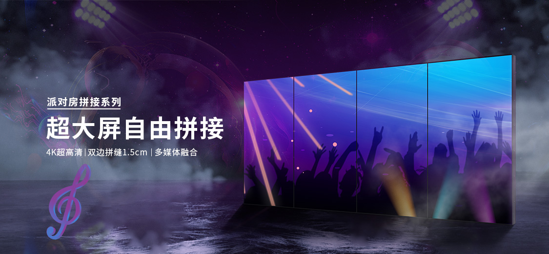 大尺寸拼接屏,超大的尺寸以及自由拼接的靈活性,可組成更大屏幕給人震撼的感覺,主要應用在KTV大包房為主,也可以應用在其它領域,比如:戶外廣告,公共場所等